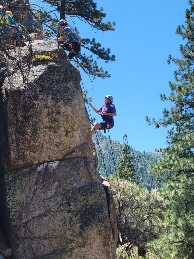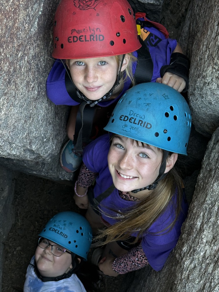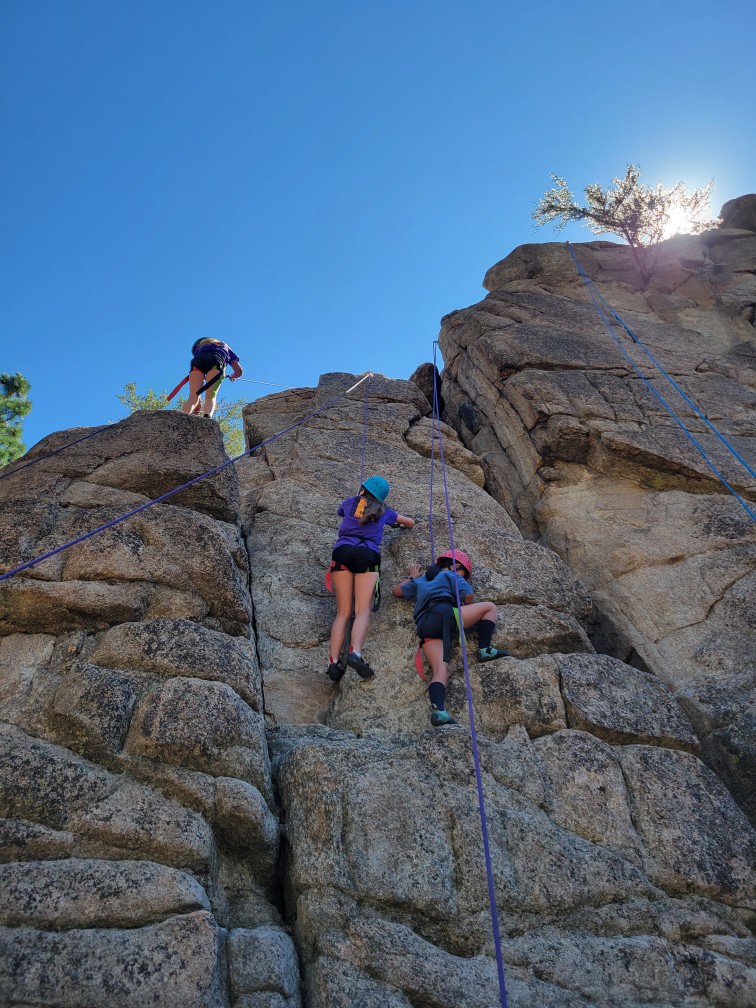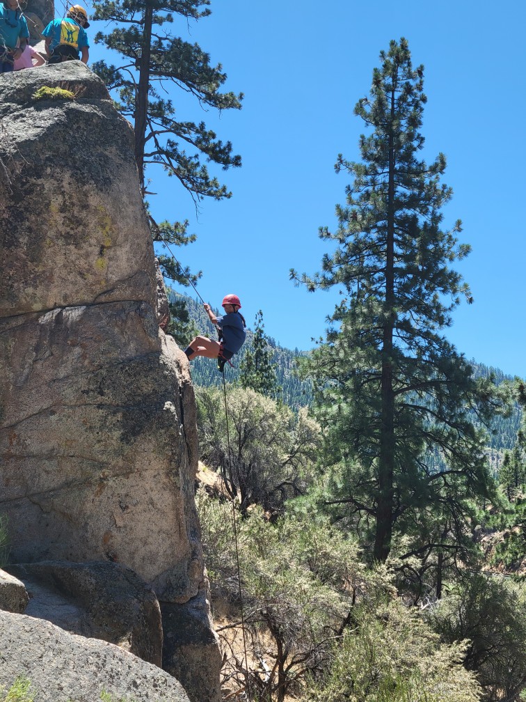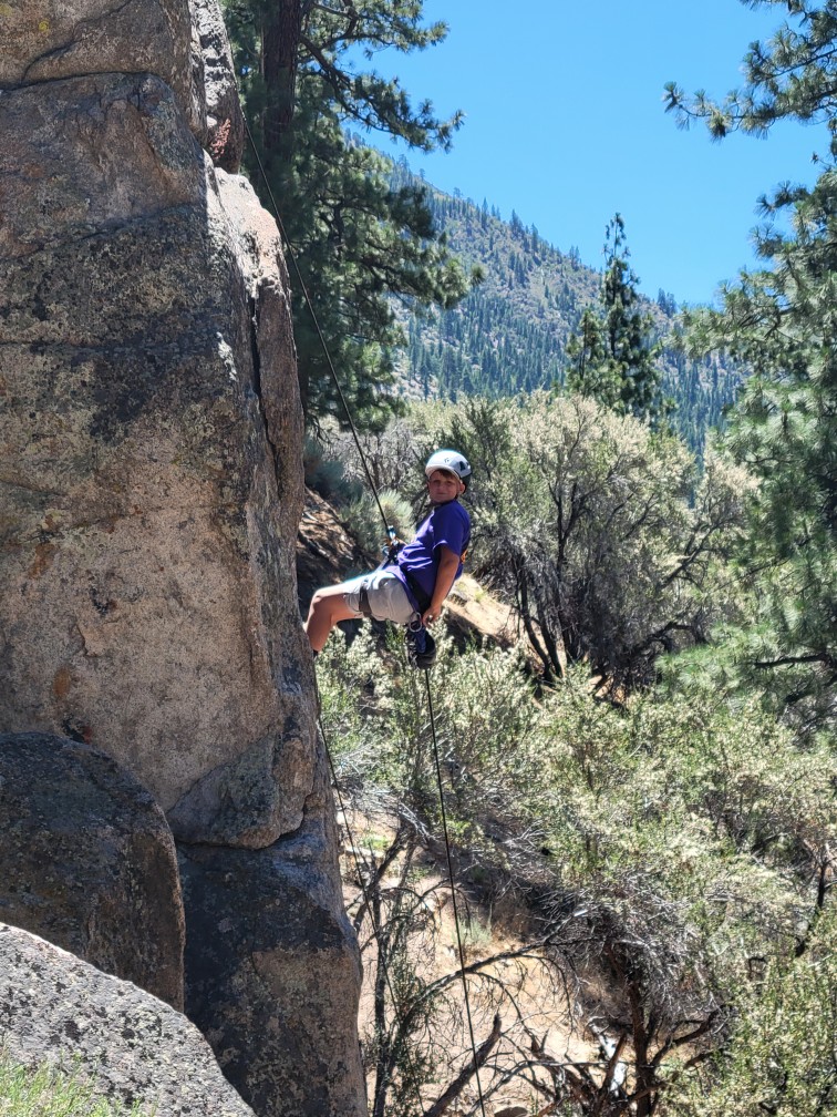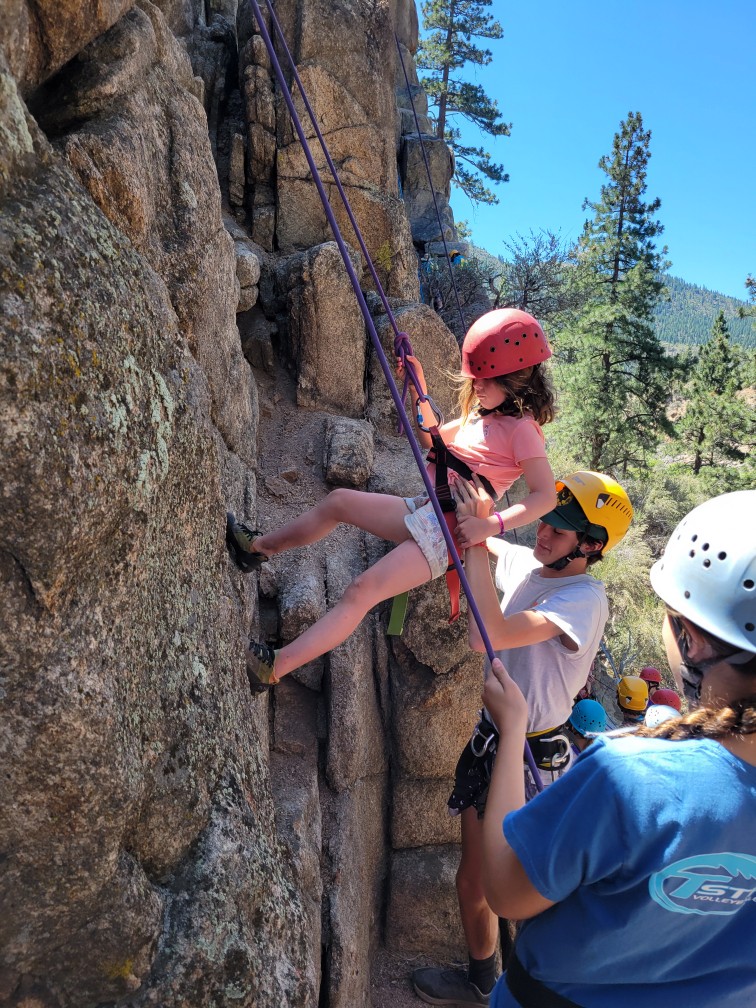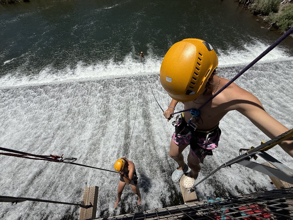 All three camps went climbing together on Wednesday. It was amazing to see how the older campers encouraged and helped the younger campers as well as their friends. It was close to the most people we’ve ever had out there at the climbing rock but it flowed smoothly and everyone got a chance to climb and many people enjoyed the rappelling, some of them multiple times! Afterward, we all spent some time at the river, with the more advanced campers doing the ever-popular waterfall rappel.