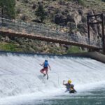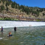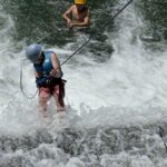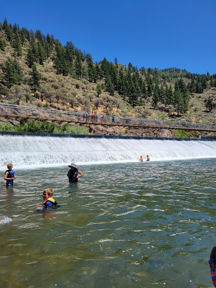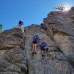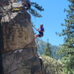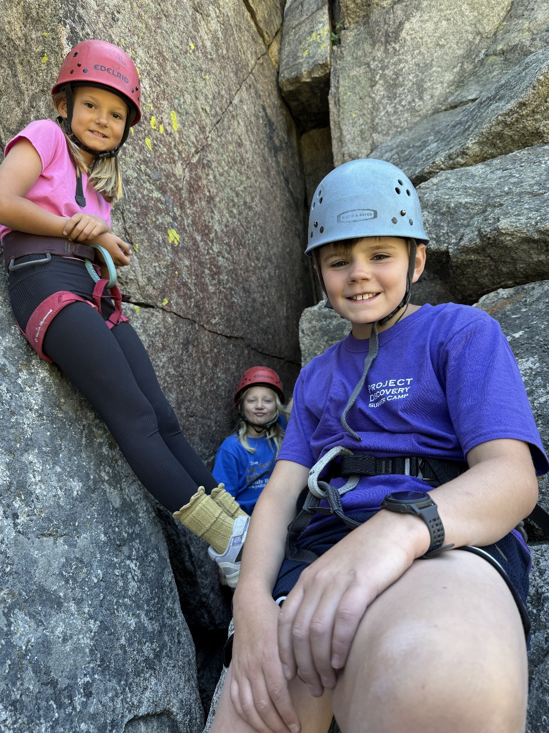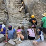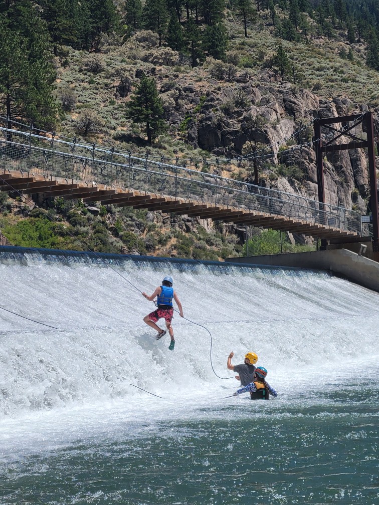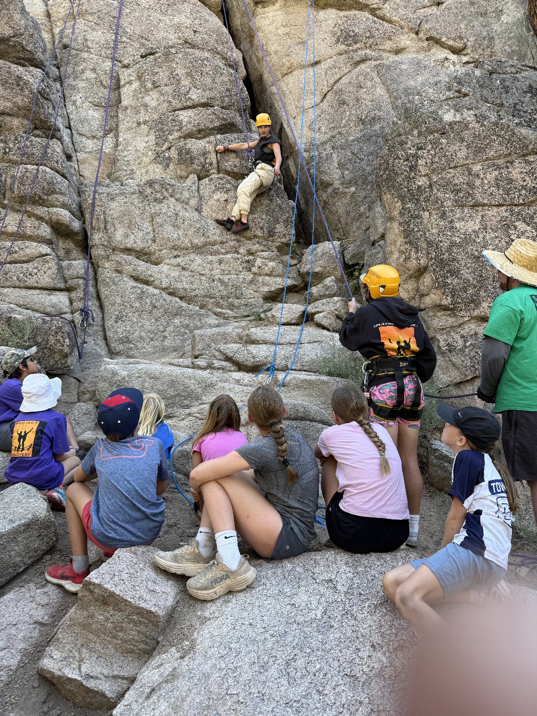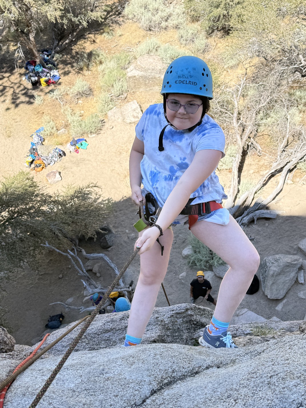 All three camps went climbing together on Wednesday. It was amazing to see how the older campers encouraged and helped the younger campers as well as their friends. It was close to the most people we’ve ever had out there at the climbing rock but it flowed smoothly and everyone got a chance to climb and many people enjoyed the rappelling, some of them multiple times! Afterward, we all spent some time at the river, with the more advanced campers doing the ever-popular waterfall rappel.