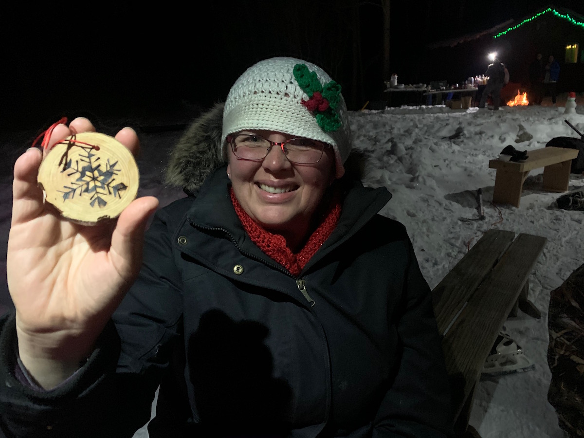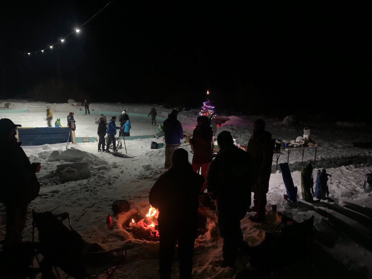 Last Saturday night witnessed the 26th Project Discovery Christmas Extravaganza. Only this time it was all outdoors at the Sky Tavern Ice Rink. Great Chicken Chili by Jamie was augmented with fire cooked brownies by Nate and a host of other great foods and drinks (yep, Josh supplied the Ullr). It was wonderful catching up and Maridy brought the spirit of Christmas with her with the giving of beautifully intricate Christmas ornaments for the tree. Everyone had a great time on the ice but few as much fun as Josh who powered through hockey with some good shots on goal. As always, it was the camaraderie and warmth that held sway and kept the cold weather at bay. Many revelers mentioned the fact that it was getting warmer and warmer despite the fact that the thermometer had dropped from 21 to 16 during the party. Guess not even Mother Nature can stop Project Discovery from the heart warming we all experience together doing good work and dedicated to making the world a better place. Our Currier and Ives Christmas Party was Christmas Spirit incarnate. Love to all who came and also to the staff that couldn’t make it. You make the world a better place.