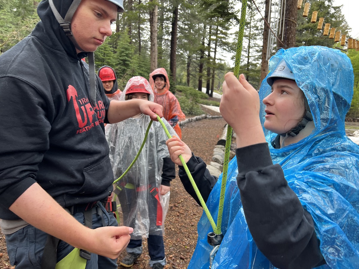 Enjoyed an amazing group of young people from Plumas County yesterday and when the skies opened up with drops that were so big they hurt your eyes looking up at the climbers they donned some wimpy ponchos and kept on climbing… this group of young people gives me hope for the world! FRC Upward Bound… YOU ROCK!