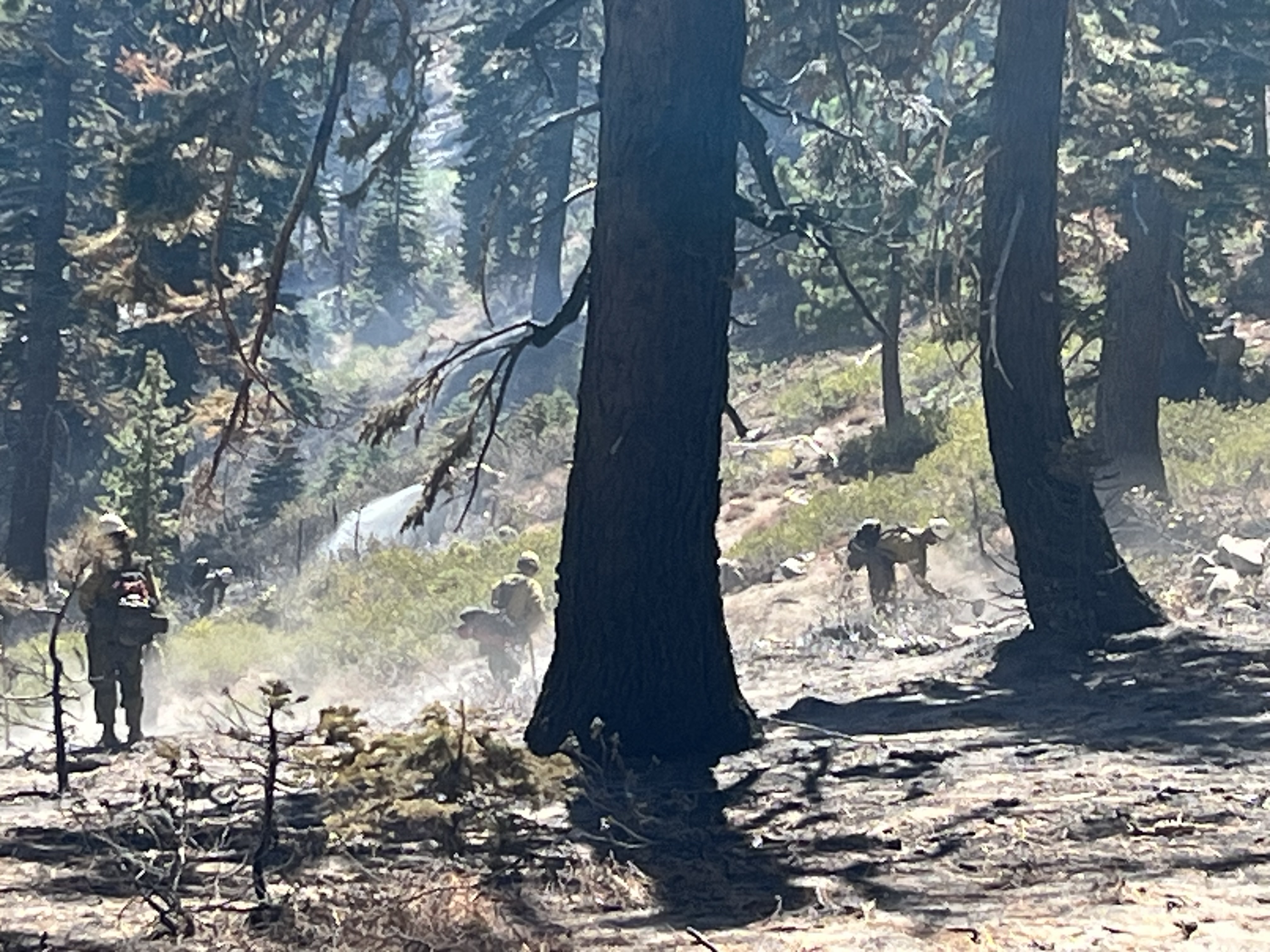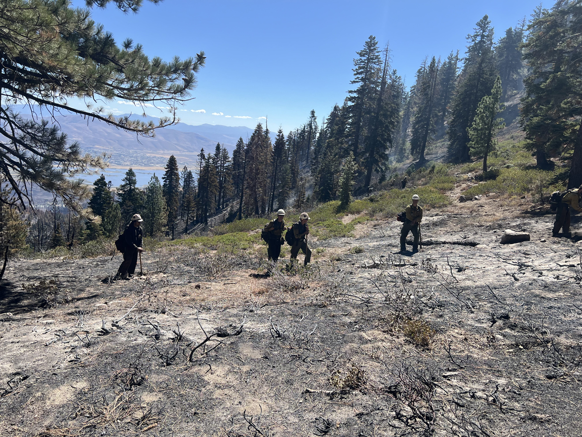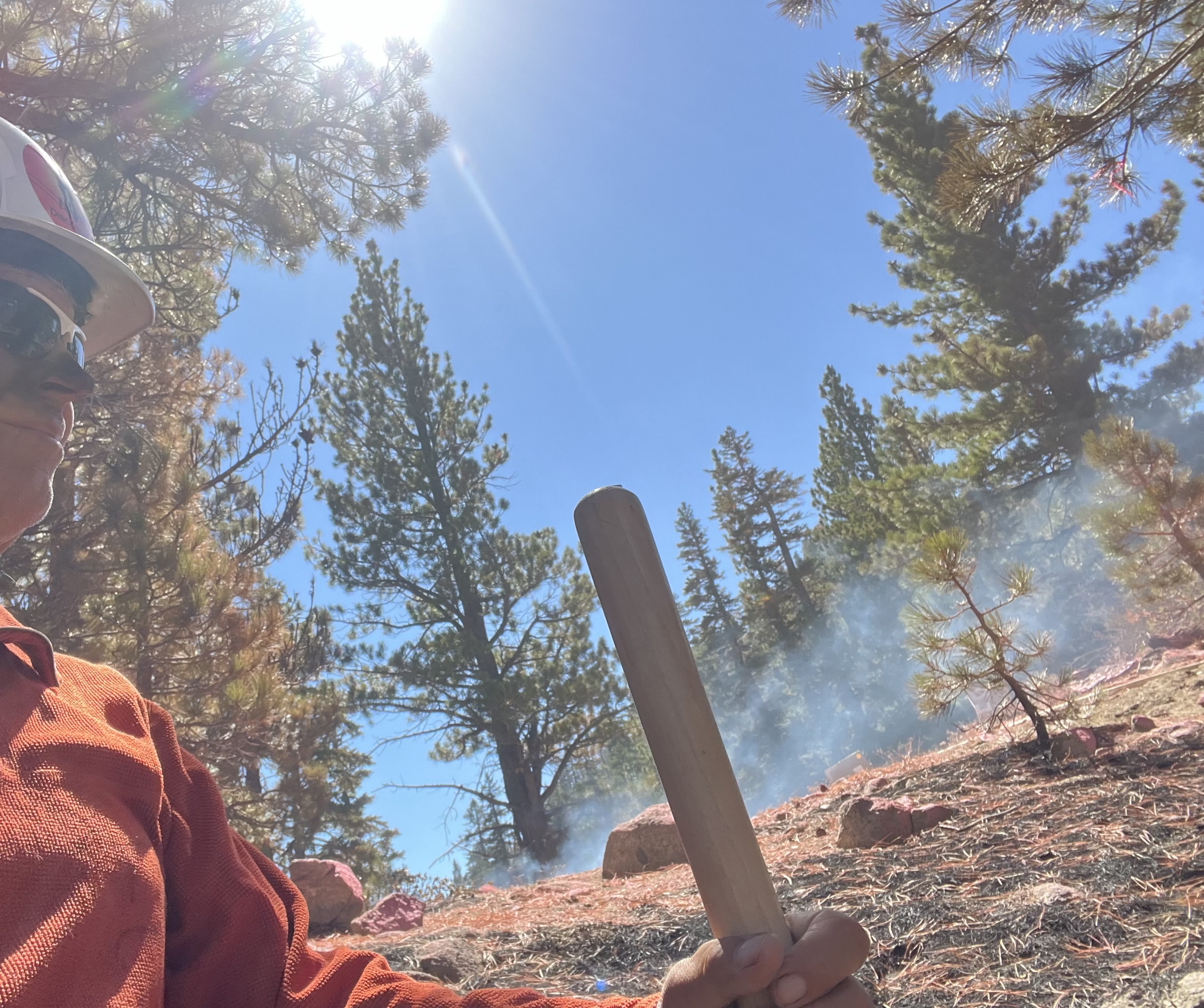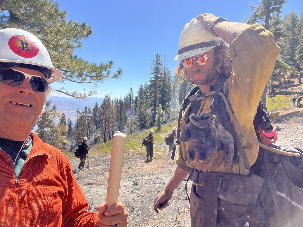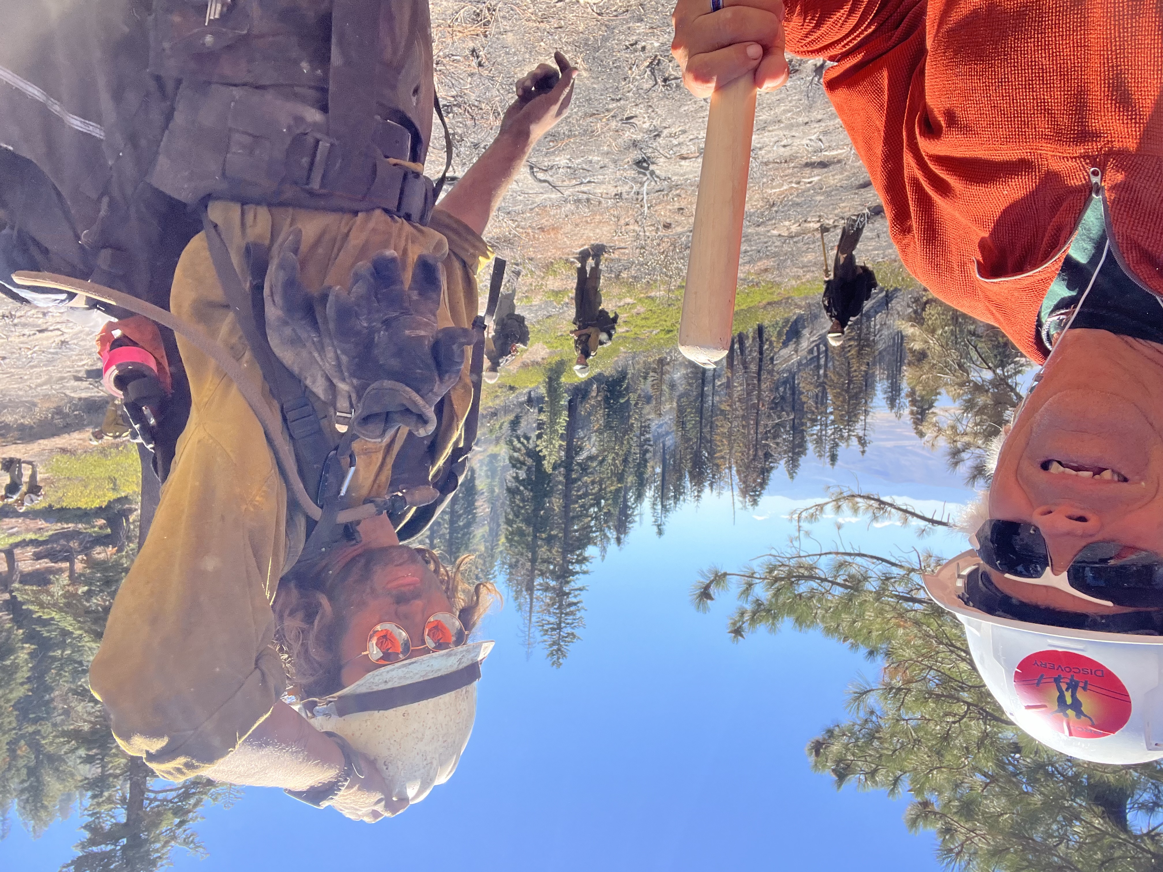 It’s been a whirlwind of a week for Project Discovery. Winds and low humidity have created quite the fire scare for the course! Mike went out to put out some hot spots just south of sky on the perimeter and a whole hand crew from Reno Fire came down from the slide road with saws and hose. They are as concerned as I am that any burning logs and stumps could come to life when the wind shifts and come straight to sky. They were super surprised to see me and asked “Where the f$&# did you come from as I was throwing dirt on a flaming log. Told them I was the sole member of the Project Discovery Not Shot crew and that I was “mopping up” to save Skytavern… he laughed and said there 15 more fire fighters behind him. I was so happy to see them up here and laying hose and cutting just may be what saves us in the end. All is ok at the moment but please keep your fingers crossed.