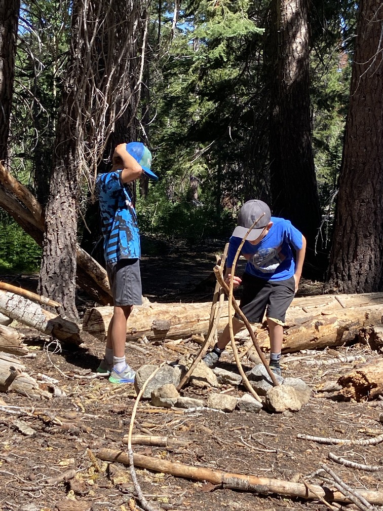 Who needs a lake when you have a hike to Hidden Pond? It’s the perfect place for Rocks, Ropes, and Boats to practicing their construction skills – building lean to’s, bridges, and fire pits. AND its a great place for finding and befriending tadpoles and frogs. So much fun!